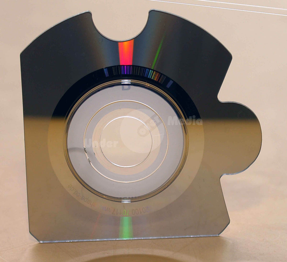 Bei dieser besonderen DVD-Fertigung wird nur der innere 8-cm-Bereich der Disc mit einer reflektierenden Schicht versehen, während der äußere Rand transparent bleibt. Dies ermöglicht ansprechende grafische Effekte und vermittelt den Eindruck einer „kleinen“ DVD.
