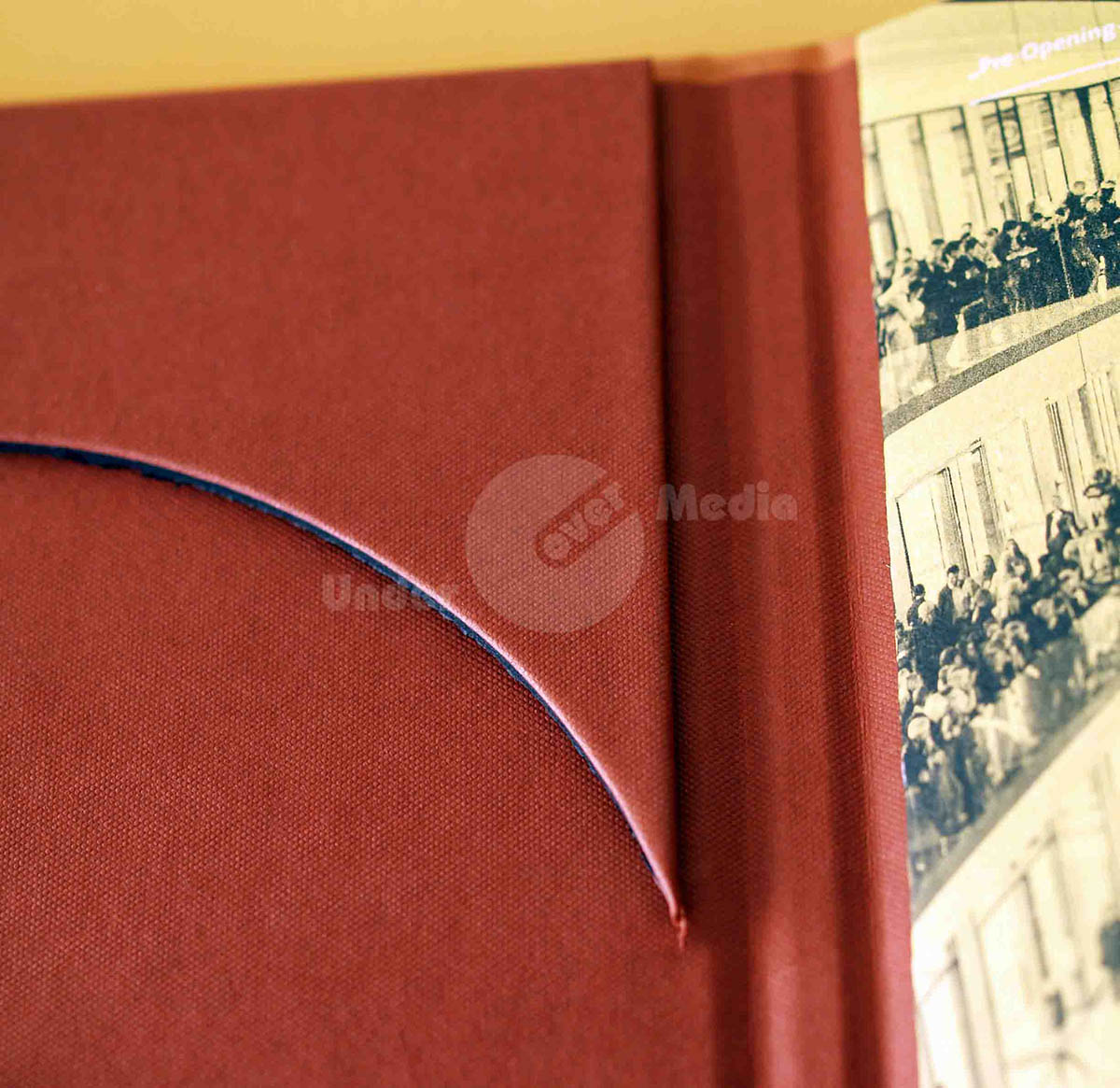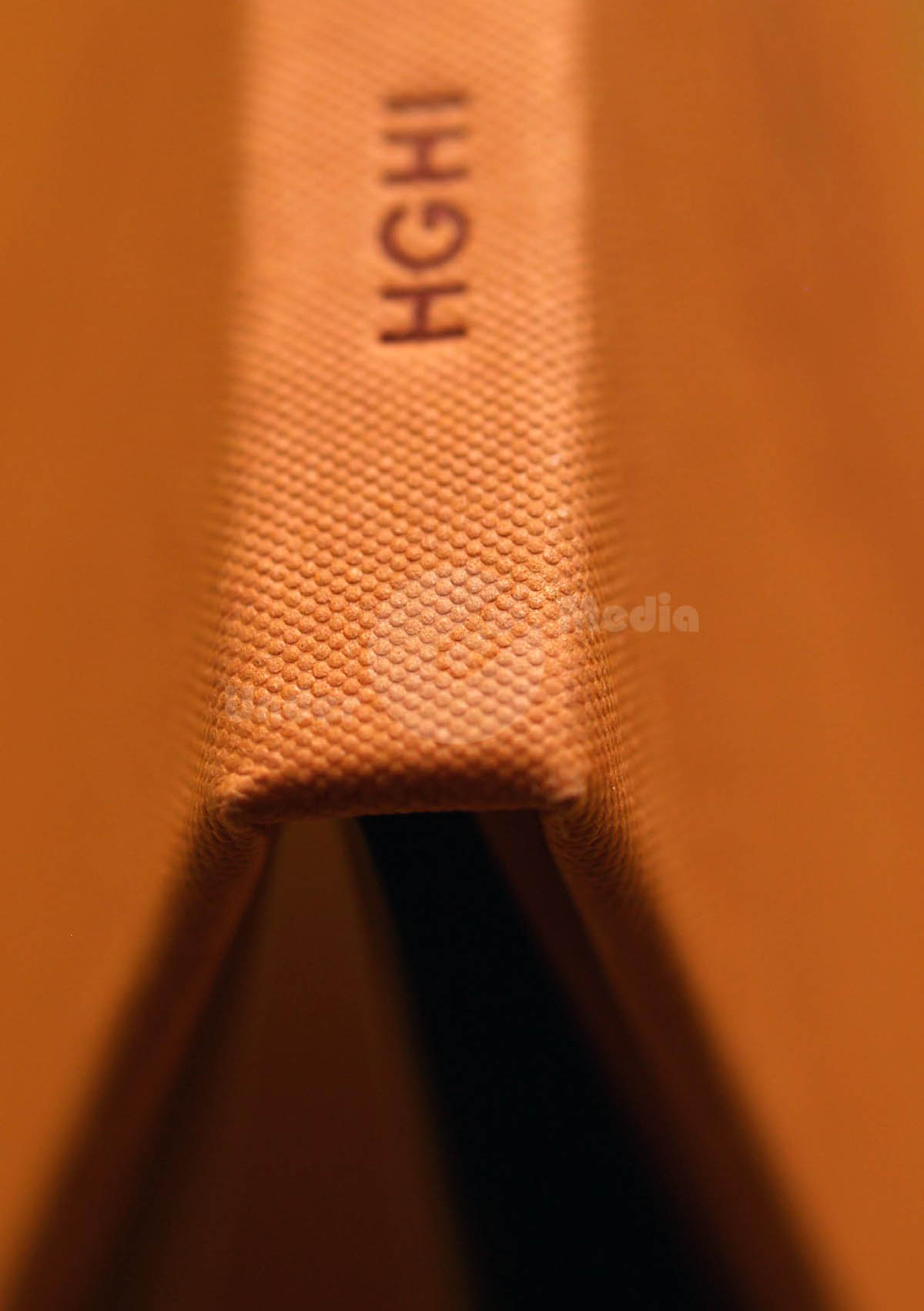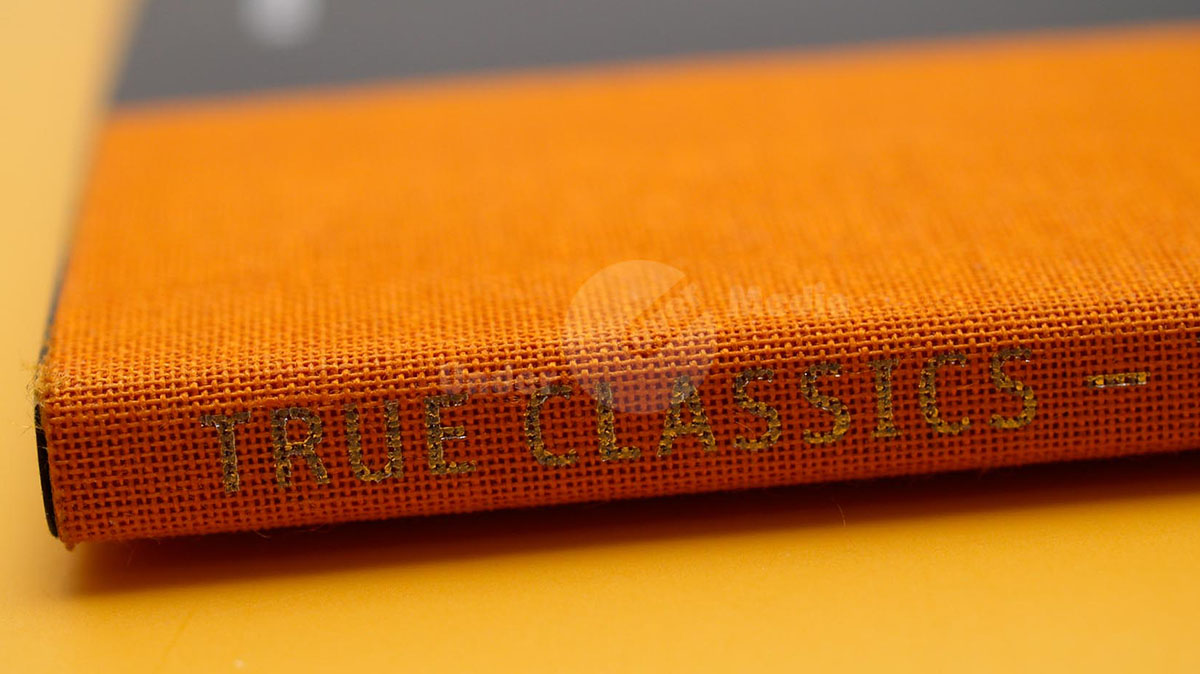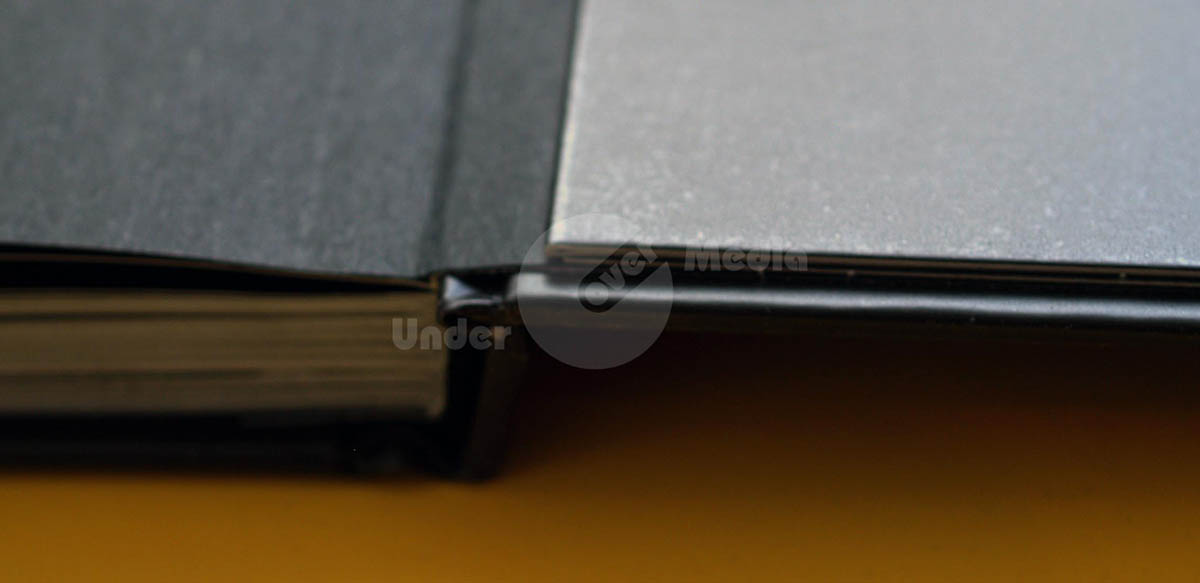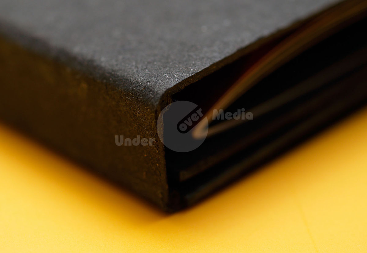 - Ein Leinenstoff wurde von der Front bis zum Rücken aufgebracht, versehen mit silberner Heißfolienprägung.