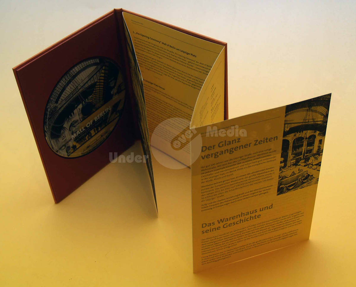 Wir entwickelten die Idee basierend auf den Anforderungen des Kunden hinsichtlich der Anzahl der Datenträger, des Booklets und der geringen Auflage. Die Grafik wurde vom Kunden bereitgestellt, während wir die Materialauswahl und technische Umsetzung übernahmen.