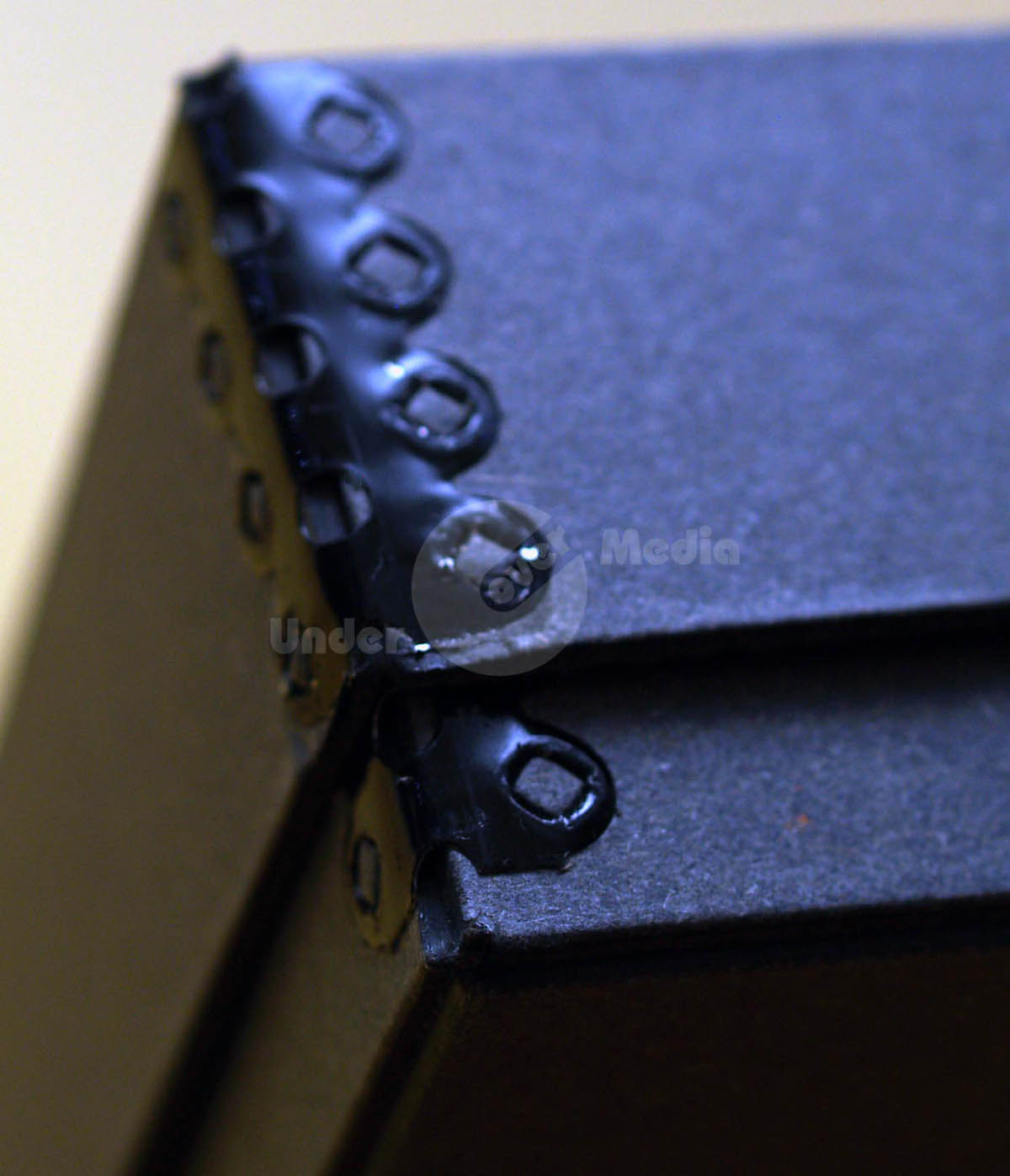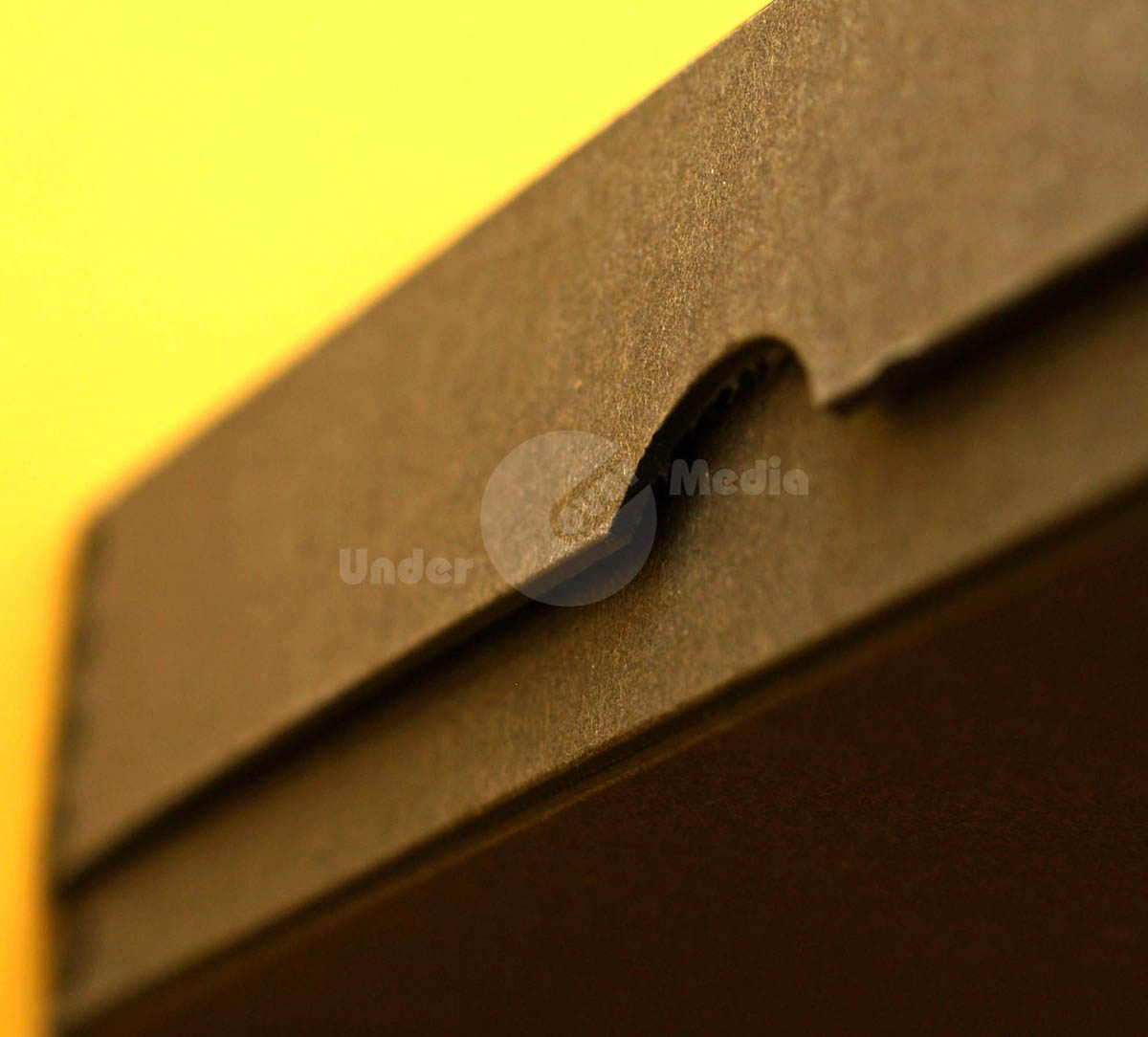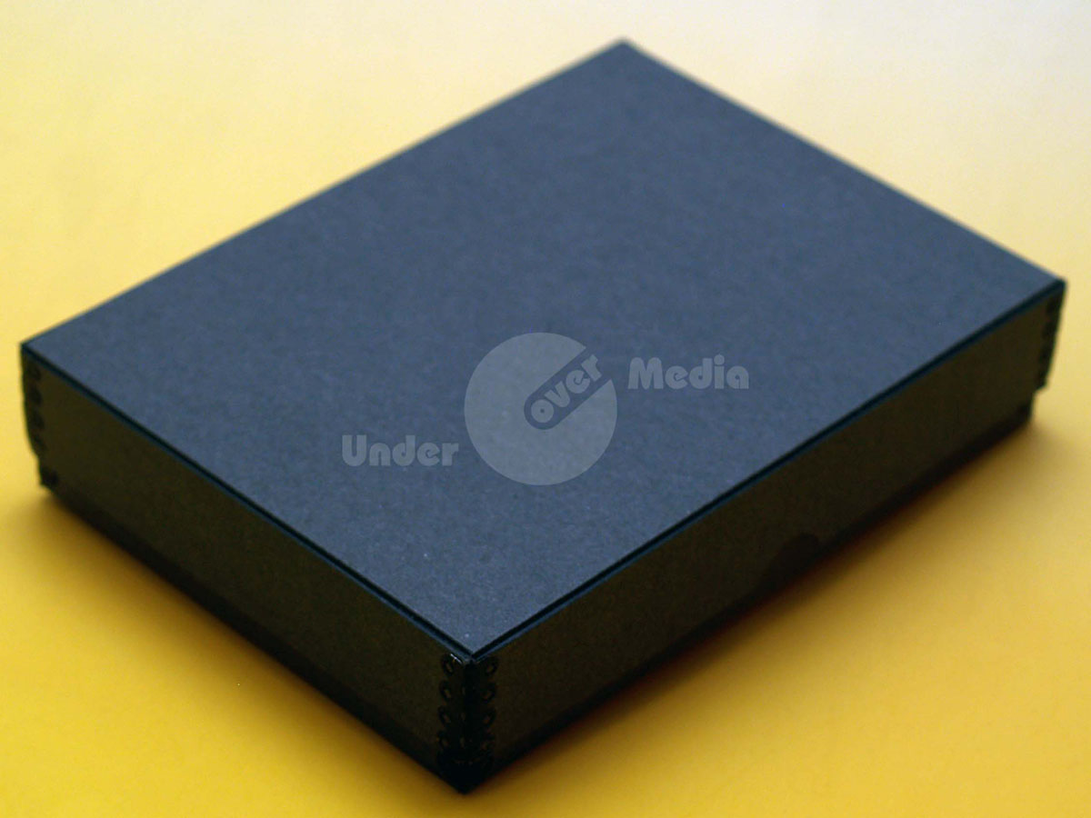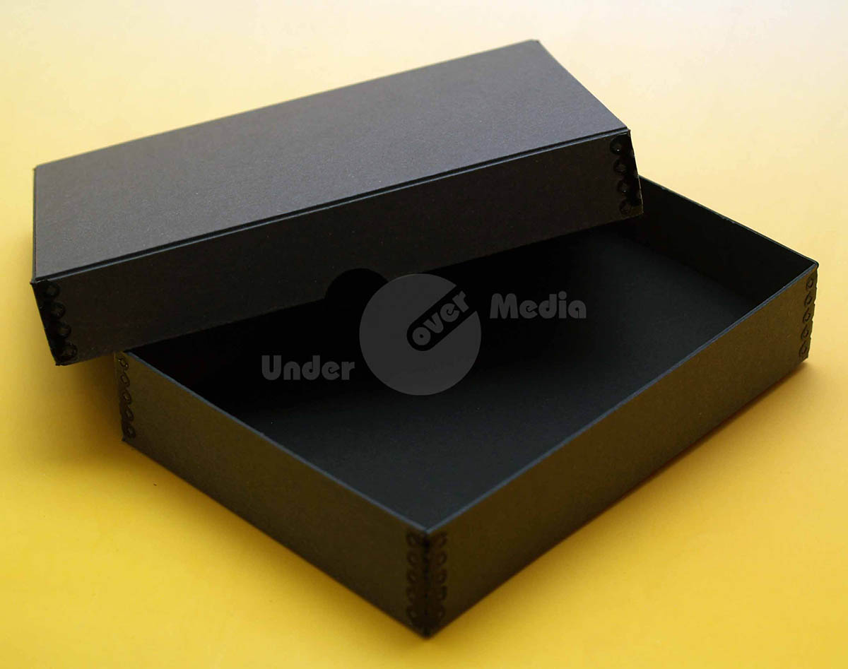 - Die zweiteilige Stülpdeckelbox wurde präzise geschnitten und mit schwarzen Eckleisten versehen.