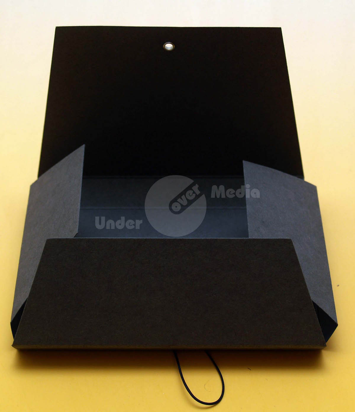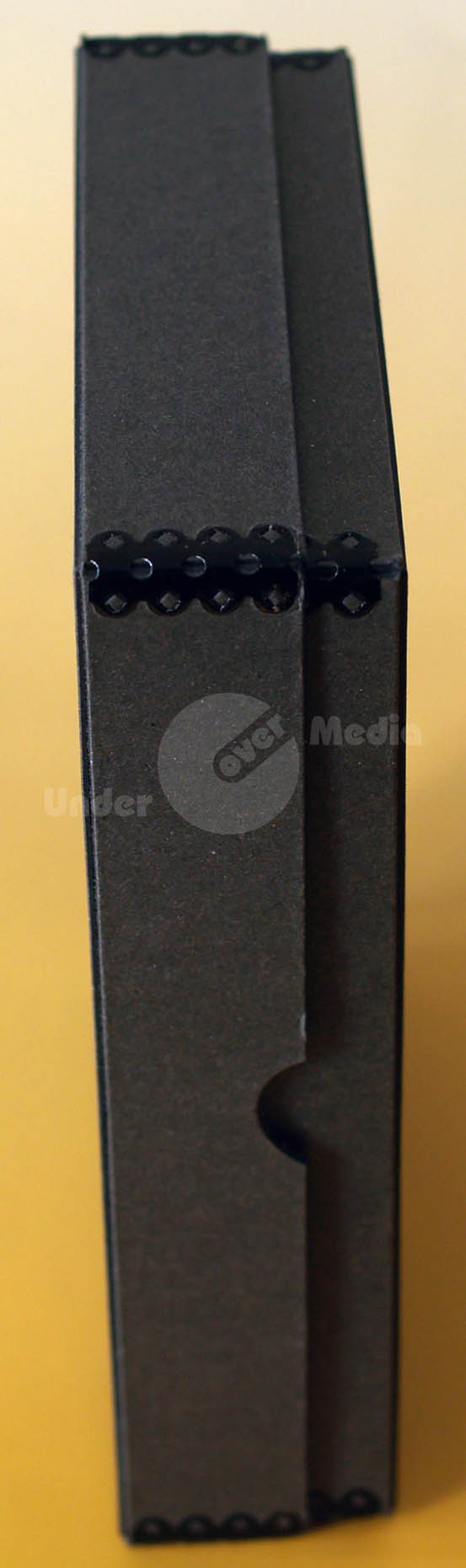 - Innen fungiert kaschierte Schwarzpappe als DVD-Halterung mit Moosgummipunkt.