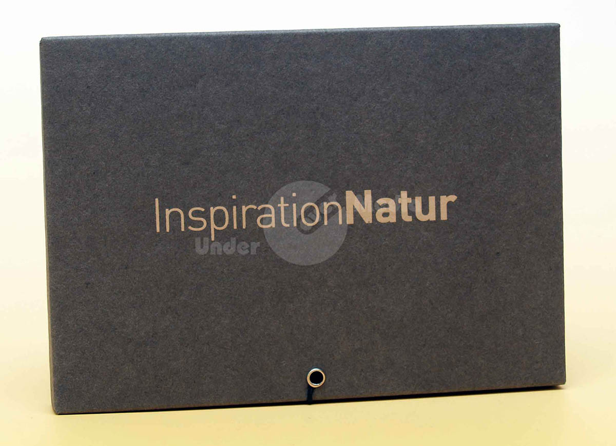 - Der Karton besteht aus Leinenstrukturkarton statt normalem Chromokarton.