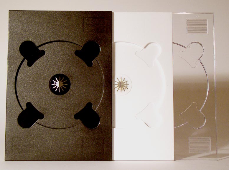 Trays sind komplette CD-Halterungen. Sie können in verschiedene Cases eingeklickt oder eingeklebt werden.